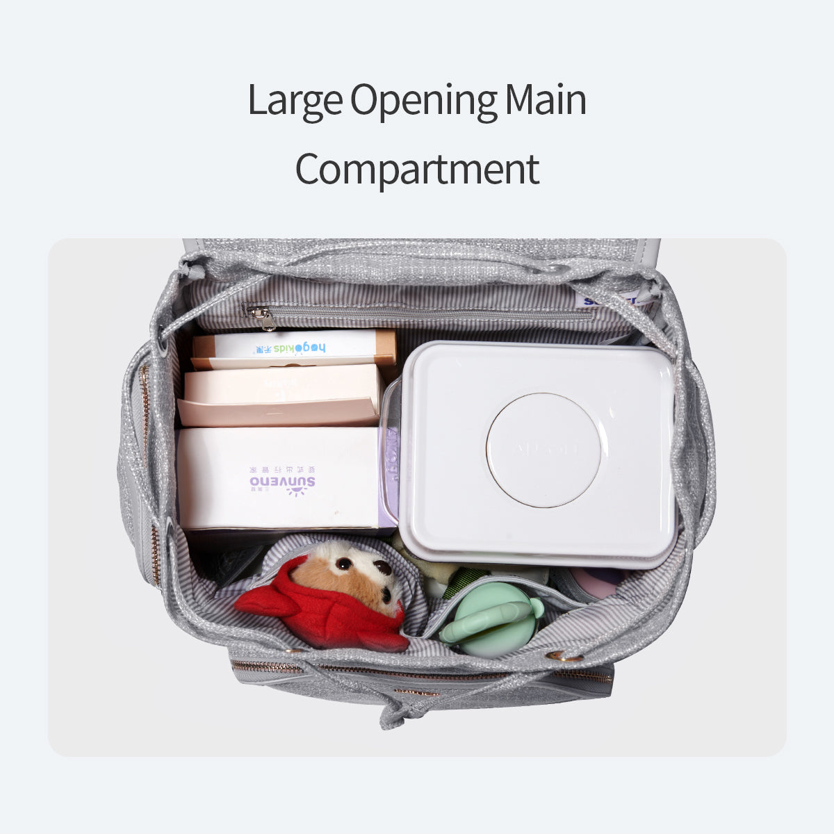 - Unique Design: The protective layer of aluminum foil keeps bottles warm in the bottle pocket compartment. A side pocket for tissues or wipes on the go and an anti-theft bag on the back for a laptop or important items. Our baby backpack diaper bag has a large base and the backpack can stand firmly. The shoulder strap is ergonomic and comfortable to wear. There is a key ring strap in the main compartments so you never lose your keys